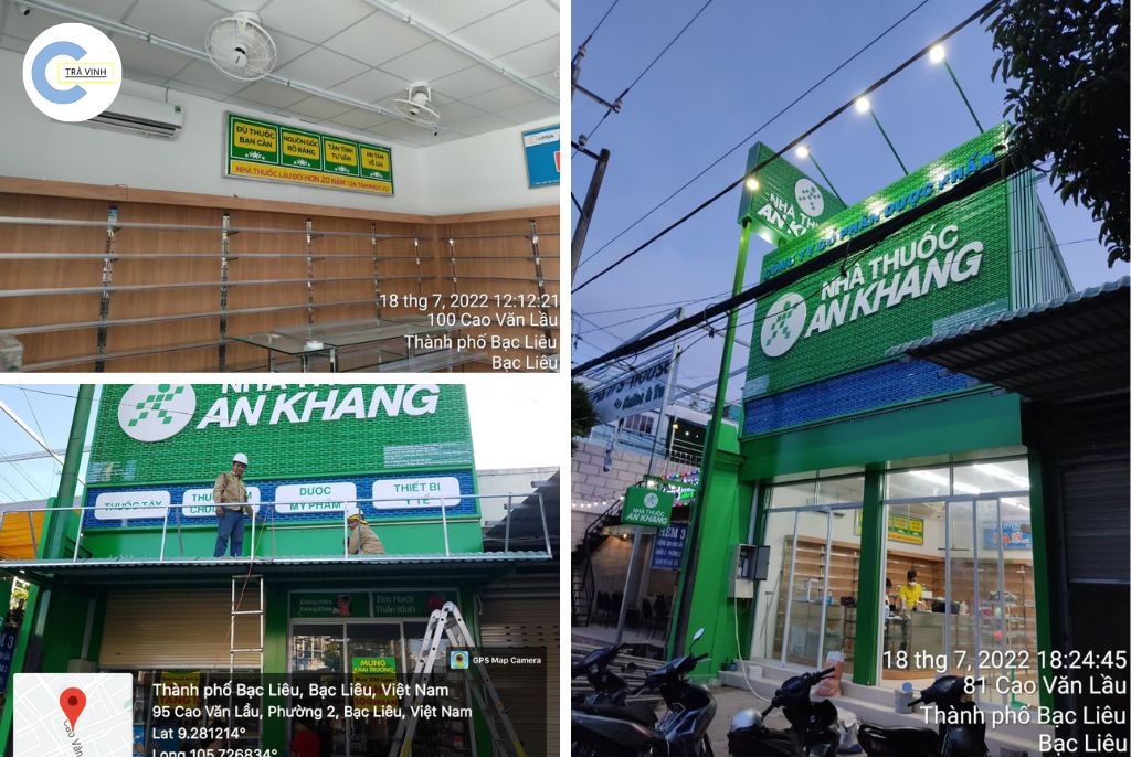 Phần bảng hiệu nhà thuốc nên thiết kế cỡ lớn, gắn chữ nổi to rõ, màu sắc nổi bật: Xanh lá, xanh dương, đỏ, vàng,… Những thông tin liên quan đến chứng chỉ chuyên môn, giấy phép hoạt động, thời gian làm việc,…nên được đưa vào bảng hiệu để khách hàng dễ dàng nhìn thấy và tin tưởng.